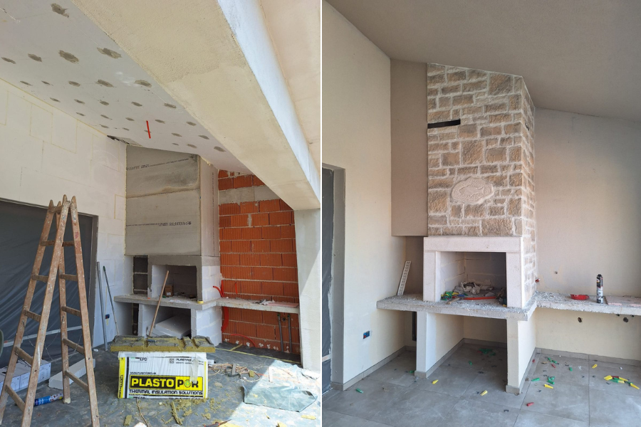 U ponudi je i postavljanje ukrasnog kamena, uključujući dekorativne obloge koje se lijepe na zidove, kamine i druge površine.