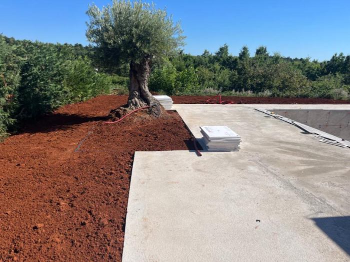 Sardo construction works, excavation, paving installation, and planting