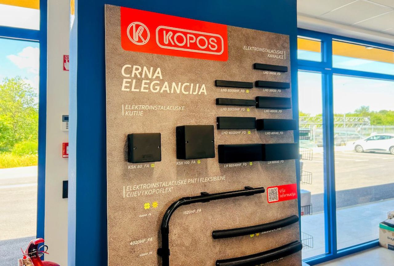 Za moderne interijere i tehničke prostore gdje estetika i funkcionalnost idu ruku pod ruku, IN-DI nudi široku paletu elektroinstalacijskog materijala KOPOS u elegantnoj crnoj boji.