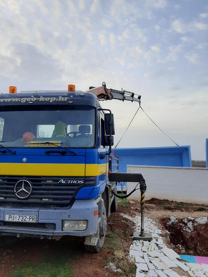 Za potrebe radova na visini posjedujemo i kamionsku dizalicu koju dajemo u najam. Cijena najma uključuje i vozača. Treba li vam kamionska dizalica za građevinske radove, prijevoz građevinskih vozila ili kamp kućica, prijevoz i premještanje reklamnih panoa, bazenskih školjki ili bilo kojeg drugog velikog/teškog tereta, javite nam se.