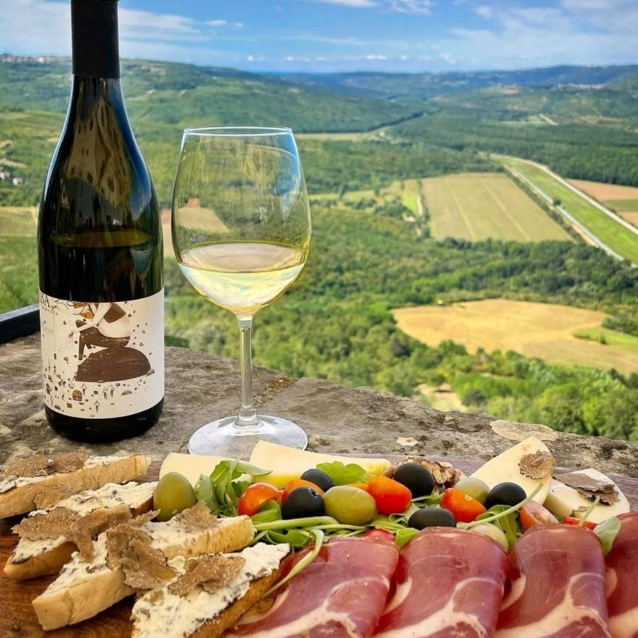 The sunny hills and the meeting point of the continental and Mediterranean climate are the ideal recipe for these exquisite wines. You can sample Malvasia wines, both fresh and aged, along with Pinot Grigio, aged Teran, and sparkling Rose, in the warm ambiance of our tasting room with a breathtaking view of Motovun.