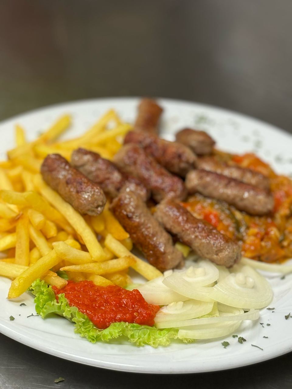 Guests can also enjoy a rich selection of grilled dishes such as čevapčići, ražnjići, pork chops, sausages and burgers. Meat lovers will savour our steaks, prepared to order, including grilled steak, steak with green pepper, stuffed steak, and steak with a fried egg. The menu also features authentic wood-fired pizzas with various toppings. The children's menu offers half portions, perfect for the youngest guests to enjoy the house specialties.