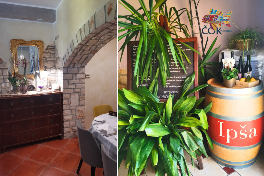 Grazie all’atmosfera familiare, alla piacevole terrazza e alla selezione di vini istriani, Konoba Čok offre un’esperienza gastronomica autentica ed è anche raccomandato dalla Guida Michelin.