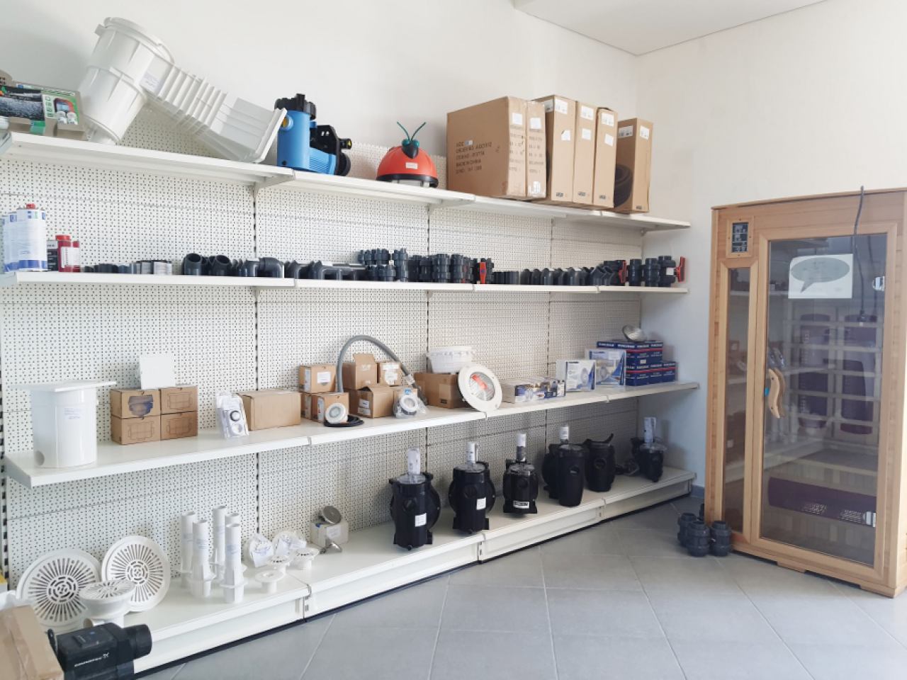 Osim u Web Shopu, svu bazensku tehniku, opremu za čišćenje i održavanje bazena, keramičke pločice i drugi materijal možete nabaviti i u našem prodajnom salonu.